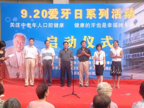 在启动仪式上,浦处长高度评价了本次苏州市华夏口腔医院主办的爱牙系列活动的积极意义,指出通过这样的活动对提高民众爱牙意识,改善人民生活质量有着重要作用。同时,姜院长针对群众的口腔问题提出了五个建议,(一)中老年人口腔健康是重要的公共卫生问题;(二)定期口腔检查,及早发现并治疗口腔疾病;(三)及时镶复缺失牙;(四)保持良好的咀嚼功能,促进全身健康;(五)养成良好的口腔卫生习惯和生活方式,全面维护口腔健康。