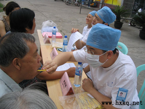 7月14日上午,江苏省口腔医院和苏州市华夏口腔医院(江苏省口腔医院苏州分院)博士医疗服务团来到苏州宏葑社区,为社区居民进行义务医疗服务。当专家来到服务地点时,已有许多群众等候在那里。博士们的桌前挤满了前来咨询的群众,5名博士也是忙得顾不上喝水,热情周到地为群众进行答疑和诊病。活动持续了2个多小时,求诊群众达50余人。专家们精湛的医术和热情服务的态度,得到了群众的连连称赞。