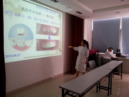 2013年9月27日下午,苏州市华夏口腔医院联合姑苏区疾控中心,组织数名医务人员走进辖区内的竹辉社区,为社区居民进行口腔卫生宣教和义诊活动。
