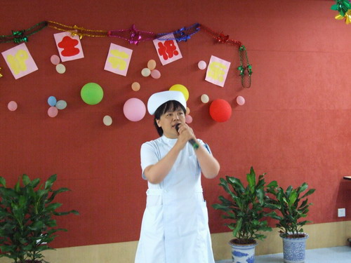 “燃烧自己 照亮别人”这是天使的情怀,晚会在内科护士长张建文的配乐诗朗诵《给南丁格尔》中拉开帷幕。晚会上医生护士同台歌舞、游戏、猜谜,时而婉约抒情,时而喜庆幽默,整个晚会精彩纷呈,洋溢着节日的气氛。